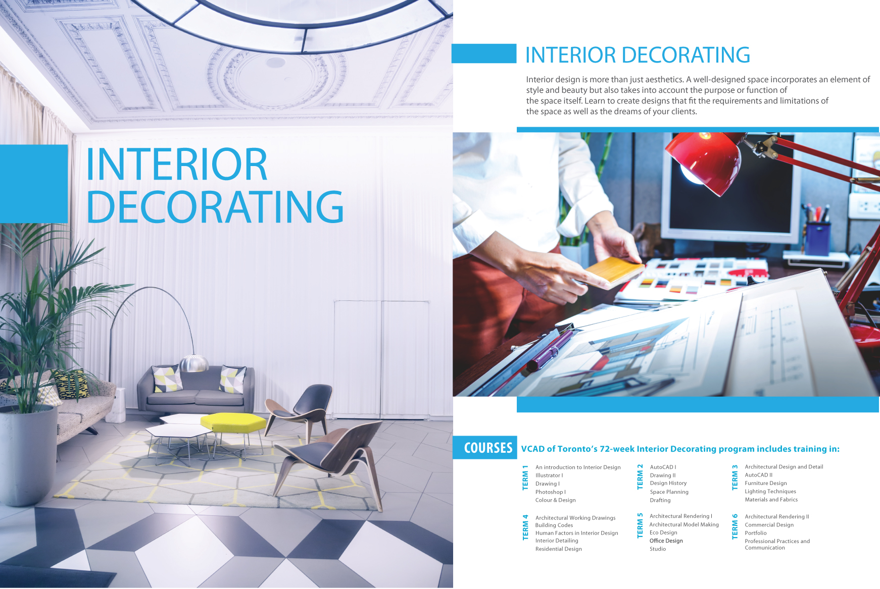 Vancouver College of Art and Design,VCAD was opened in 2009, located in downtown Vancouver, offering creative programs with marketable learning outcomes. It offers applied arts courses in Graphic Design, Fashion Design, Interior Design, 3D Modelling Animation Art & Design, Game Development and Design, Mobile Game Design and Development, and Marketing and Merchandising for Fashion.